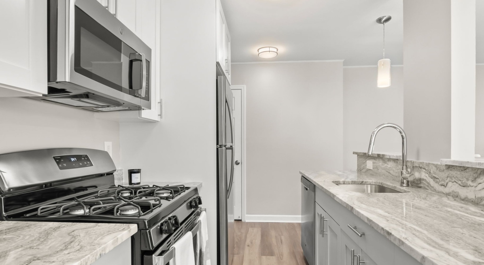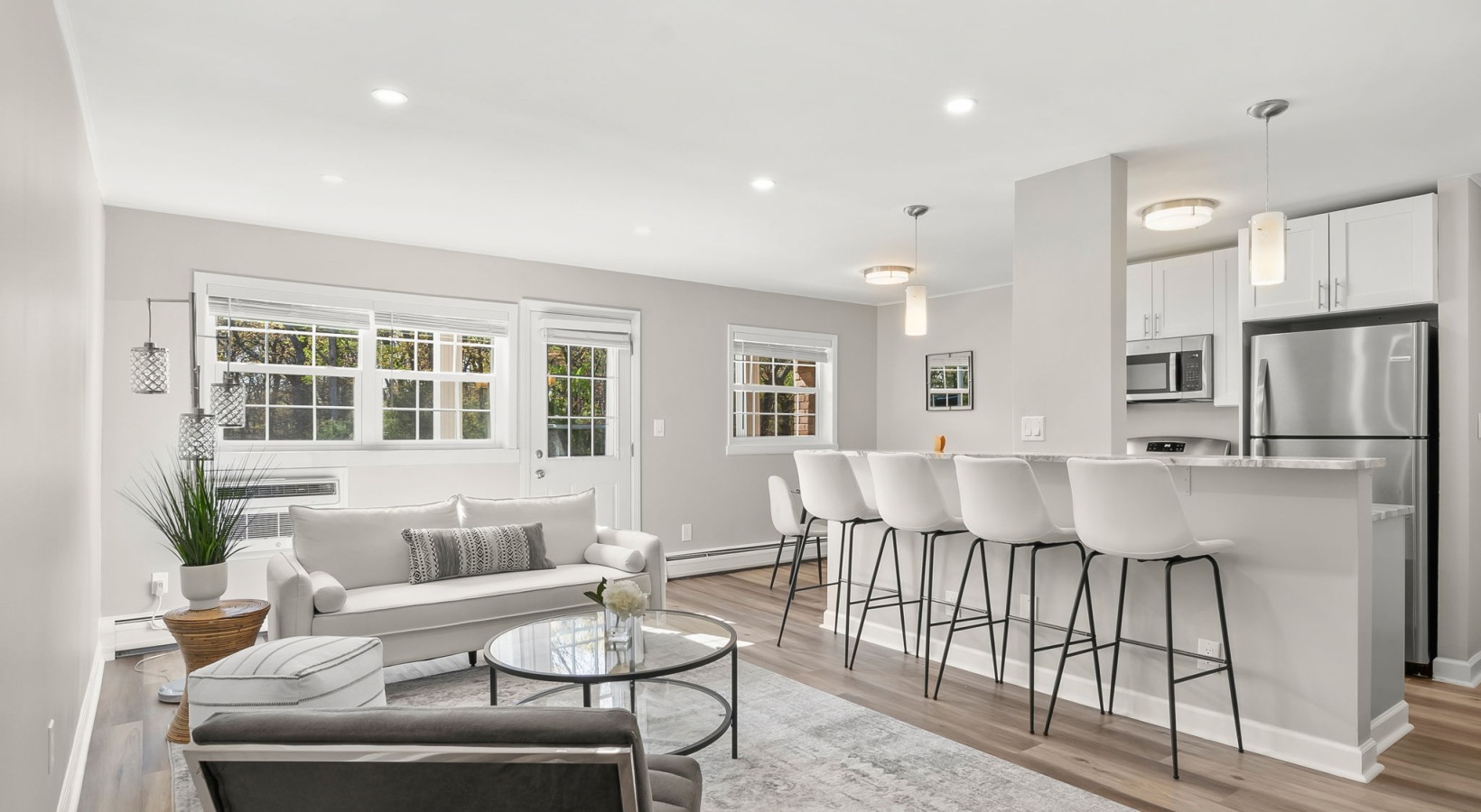 From the stunning renovated kitchens with sleek quartz countertops and gleaming stainless steel appliances, to the warm luxury vinyl plank flooring and elevated designer finishes throughout, every corner of these homes has been thoughtfully upgraded with you in mind. Bright, spacious layouts open up to create interiors that feel as fresh and polished as they look, while outside, lush landscaped grounds and the breathtaking natural scenery along Jordan Creek create a setting that is truly in a league of its own. These photos will give you a glimpse, but trust us, it is even better in person. Come see it for yourself.